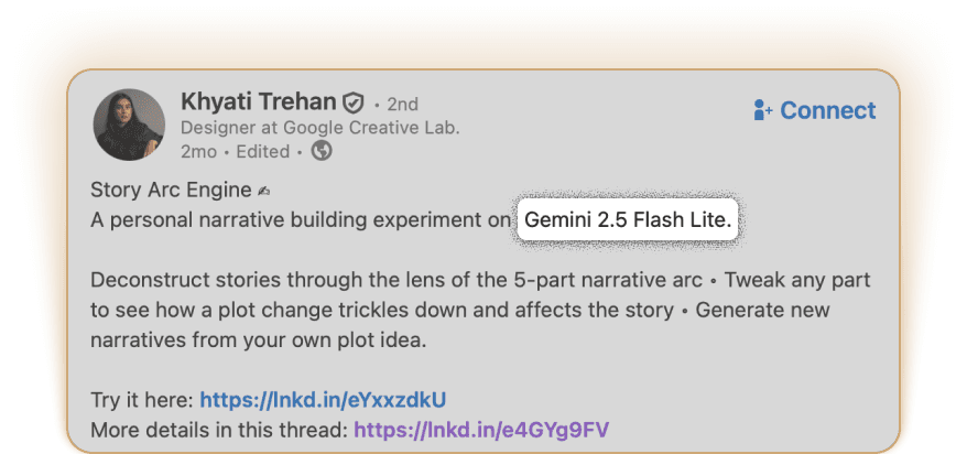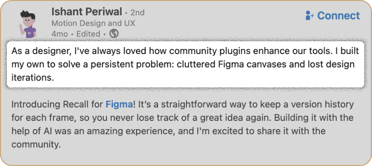 behind that work. So we added a LinkedIn button for easy connection and a small creator notes section to share the process.