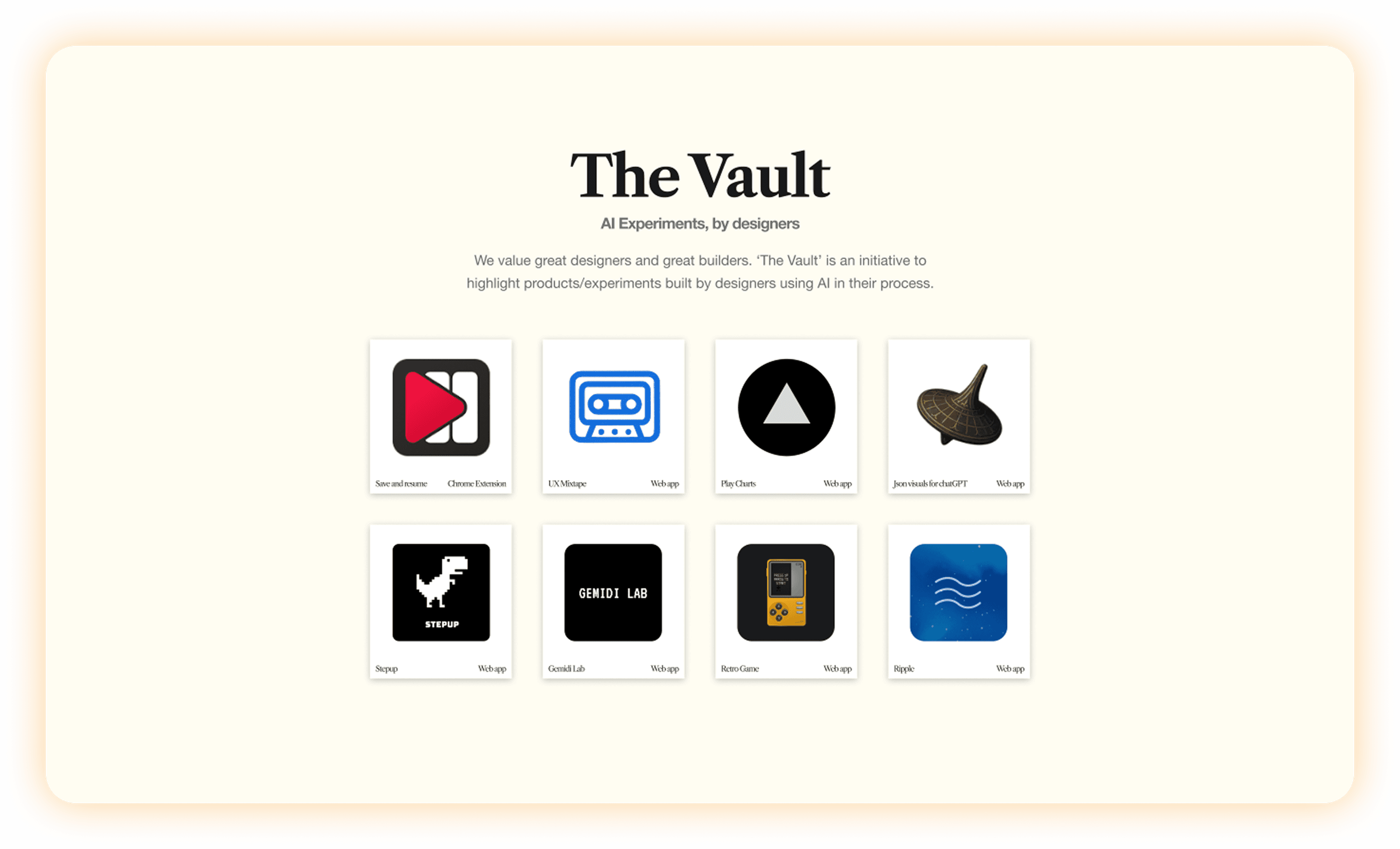 The goal was to build a space where design meets AI showcasing creative experiments and ideas by designers.